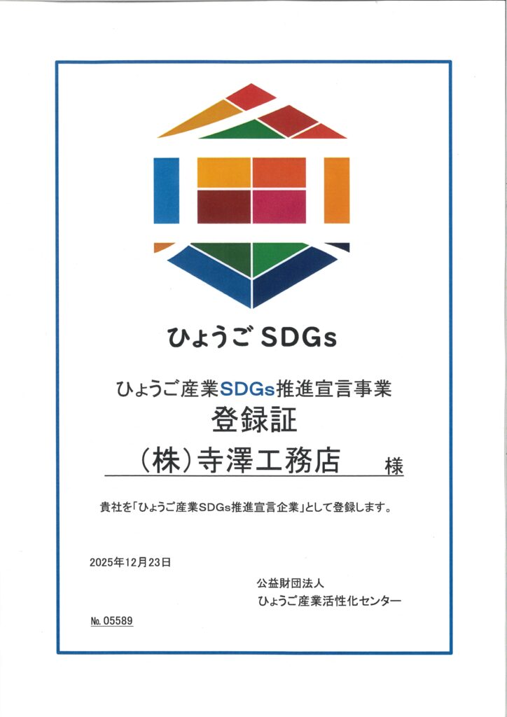「ひょうご産業SDGs推進宣言事業」に登録しました|高所作業(鳶職)のプロ集団|株式会社 寺澤工務店